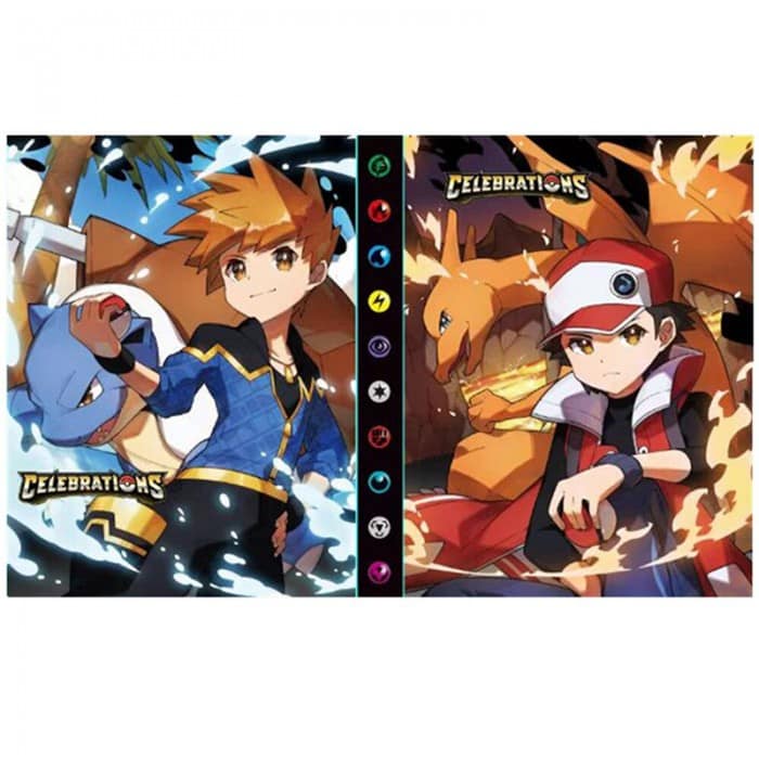 La couverture du classeur met en vedette les deux premiers héros de l’univers Pokémon, Red et Blue, rappelant le commencement de cette incroyable aventure.